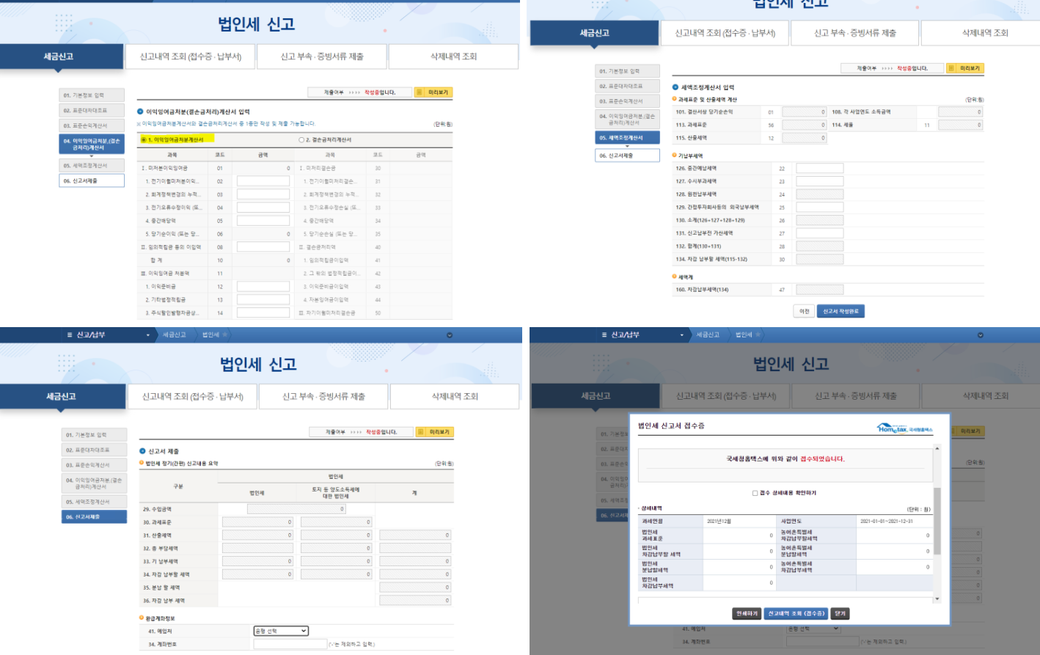 3) 법인세의 경우에도 3월에 무실적 신고를 진행하려 하는데 홈텍스의 법인세 간편신고에서