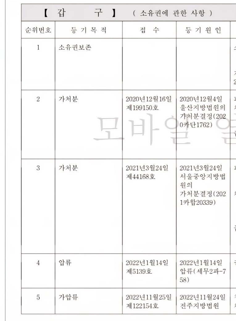 월세 계약 고민중인 오피스텔 등기부등본을 떼보았는데, 갑구 내역이 저렇게 많이 떠있습니다... 을구에는 근저당 한개 잡혀있구요.