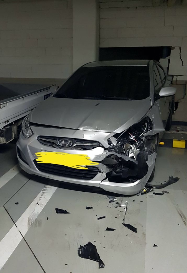 지하주차장에 주차 된 저희차를 박았습니다