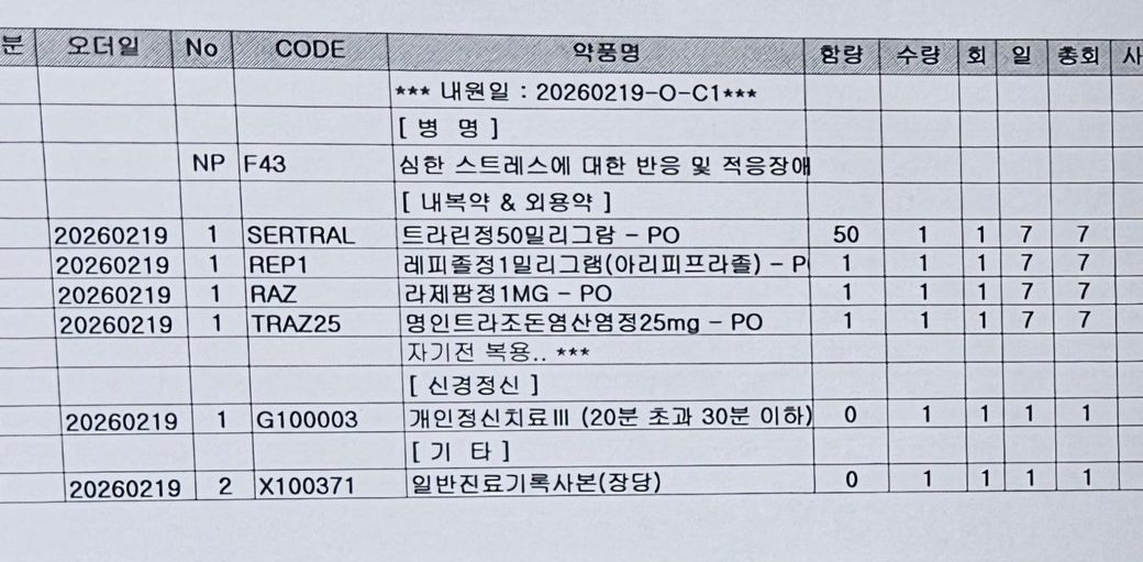 이번에 받은 정신과 닥터 오더는 사진 첨부 합니다.