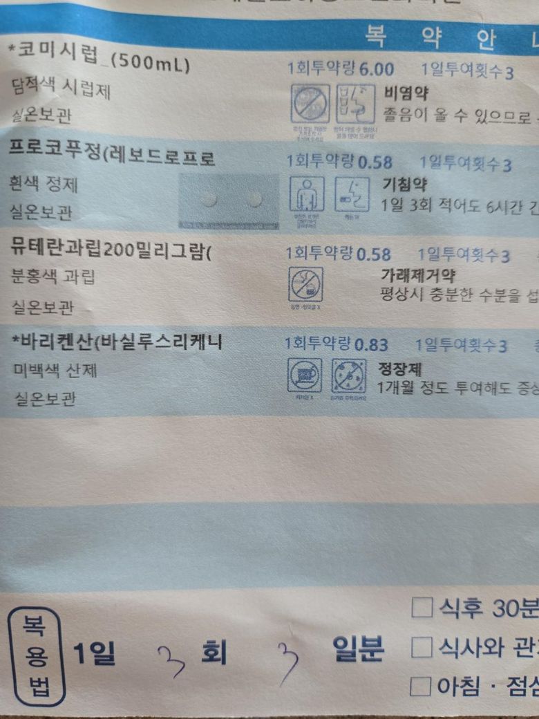 둘째(첫번째 약봉투) 점심약을 먹인 후에