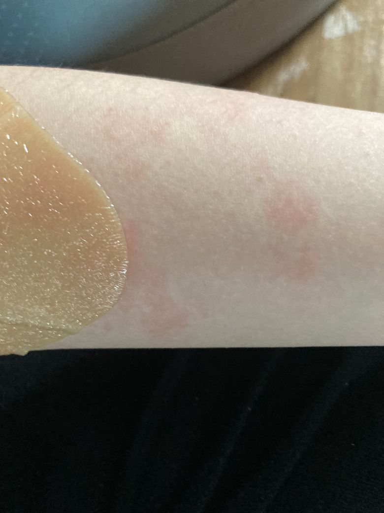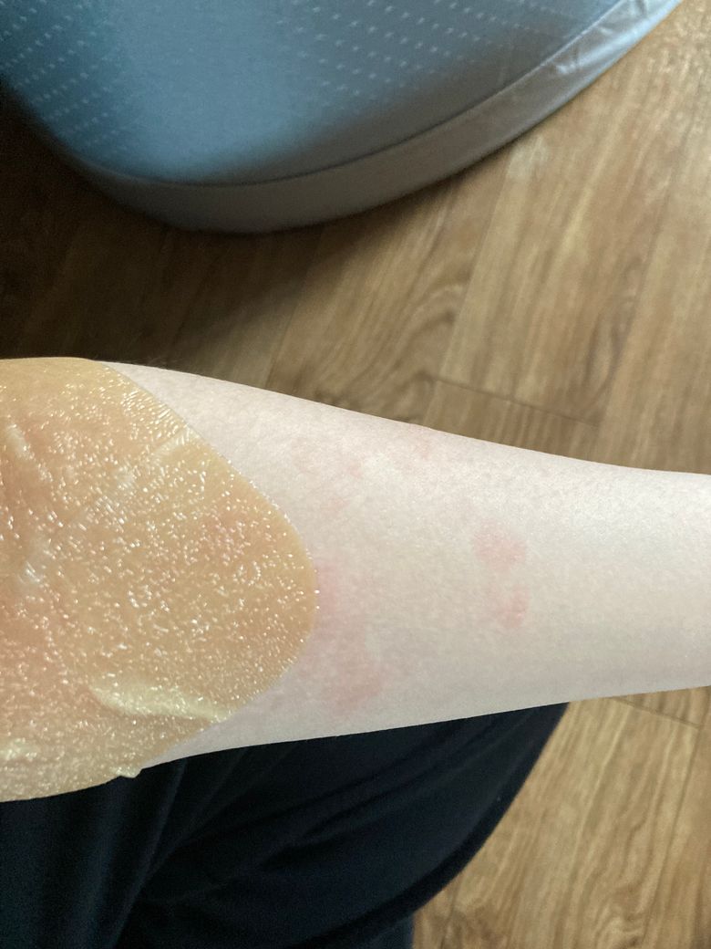 일단 밴드를 붙여 두어서 물집 있는 곳은 아니고 밴드 밖에 빨갛게만 있는 곳에 바르는 것 같습니다.