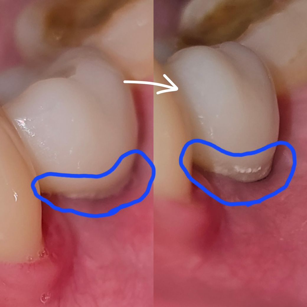잇몸에 생긴 치석 밑으로 까만게 보이는 것 같은데 설마 일주일만에 제 잇몸이 치석 때문에 내려간 걸 까요 ㅜㅜ