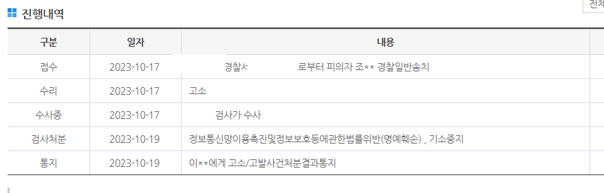 기소중지되었다가 재기된 정보통신망 명예훼손 고소건이 있는데 진행사항을 알 방법이 있을까요