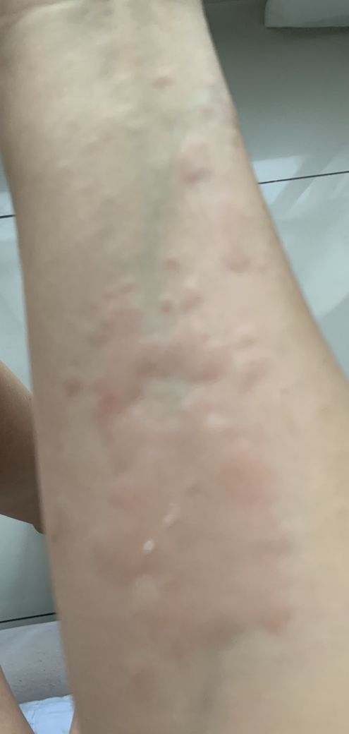 그 날 이후로 발진도 없고 그래서 괜찮은가 싶었는데 오늘 아침에 갑자기 또 이렇게 팔에 허벅지에 올라왔어요.