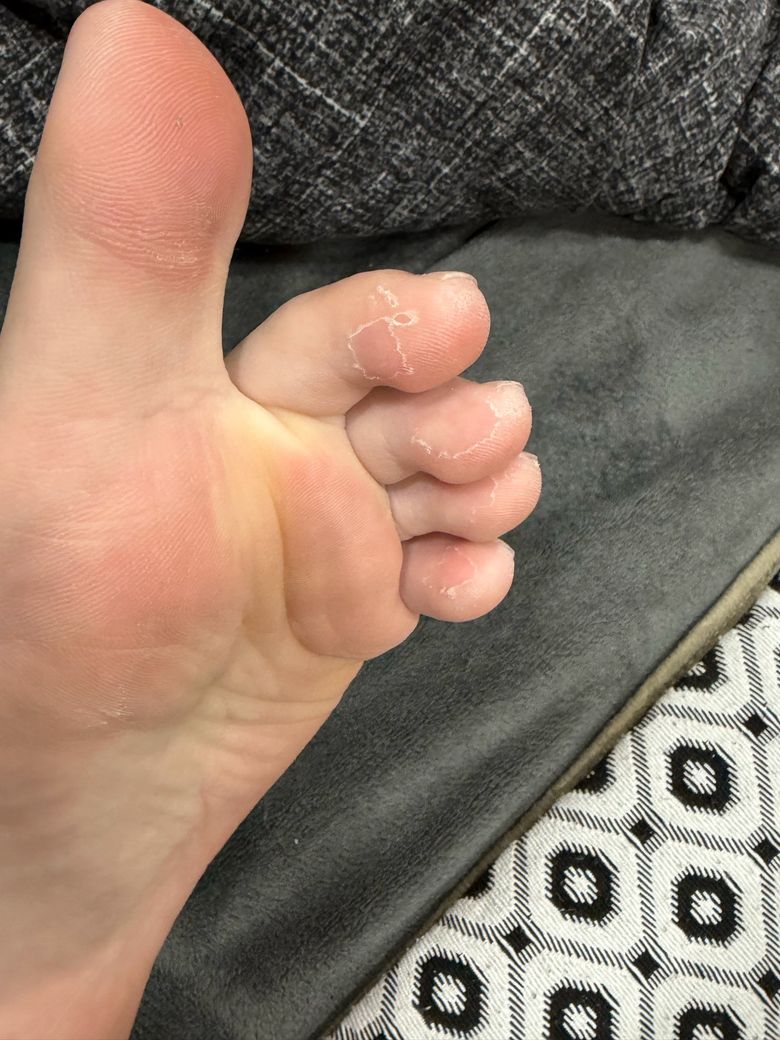 사진의 소견을 통해서 구체적인 감별 및 진단을 내리는 것은 가능하지 않습니다. 발바닥 및 발가락의 피부가 벗겨지는 소견이 보이는데 이는 무좀에 의해서도 생길 수 있는 증상이지만 이외에도 습진, 단순 건조함 등 여러가지 가능한 요인들이 존재하기 때문에 구체적으로 무어라 이야기를 할 수 없습니다.