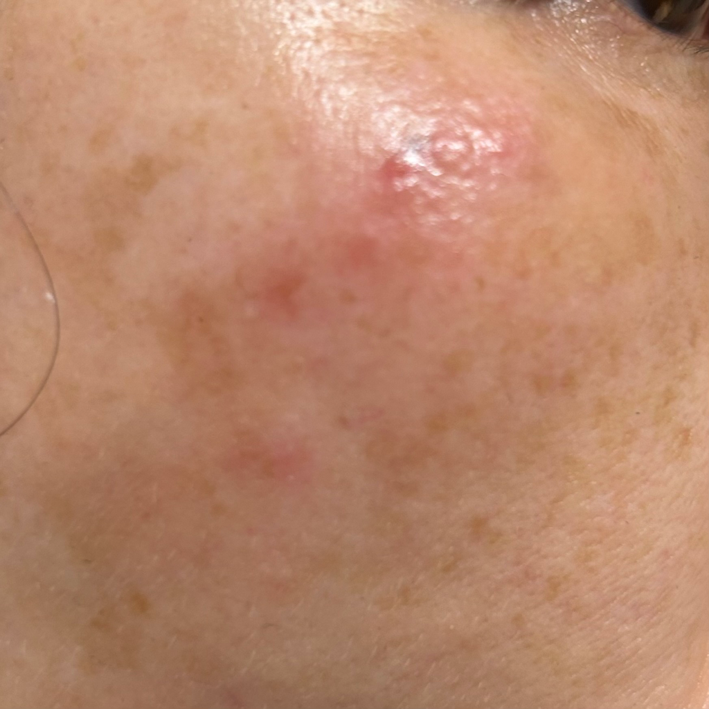 이틀 전 저희 엄마(53)께서 자고 일어나셨더니 볼 한 쪽에 아래 사진과 같은 게 났다고 하셨습니다. 평소에 뾰로지는 전혀 나지 않는 좋은 피부를 갖고 계세요! 어떤 통증도 없다고 하시면서도 만지면 아주 미세한 통증과 긁고 싶은 느낌이 든다고 하시더라구요ㅠㅠ . 최근에 침대를 바꿨는데(이불은 바꾸지 않음) 혹시 빈대나 진드기에 물리신 걸까요?!