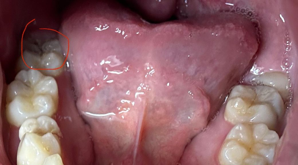 사진이 어두워 명확히 보이진 않으나 어금니 씹는면에 충치가 있어보이기도 합니다. 치과가서 엑스레이 찍어보세요