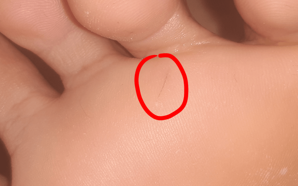 갑자기 발바닥을 오므리거나 걸을때 계속 무엇인가 찌르는 통증이 있어서 봤더니, 눈썹같은게 각질층을 뚫고 깊게 박혀서 나올 생각을 하지 않습니다.