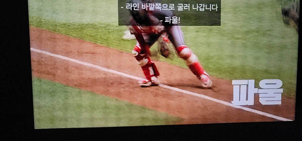 타자가 친 공이 외야에 떨어질때는 처음에 공이 닿은 면을 기준으로 정합니다.