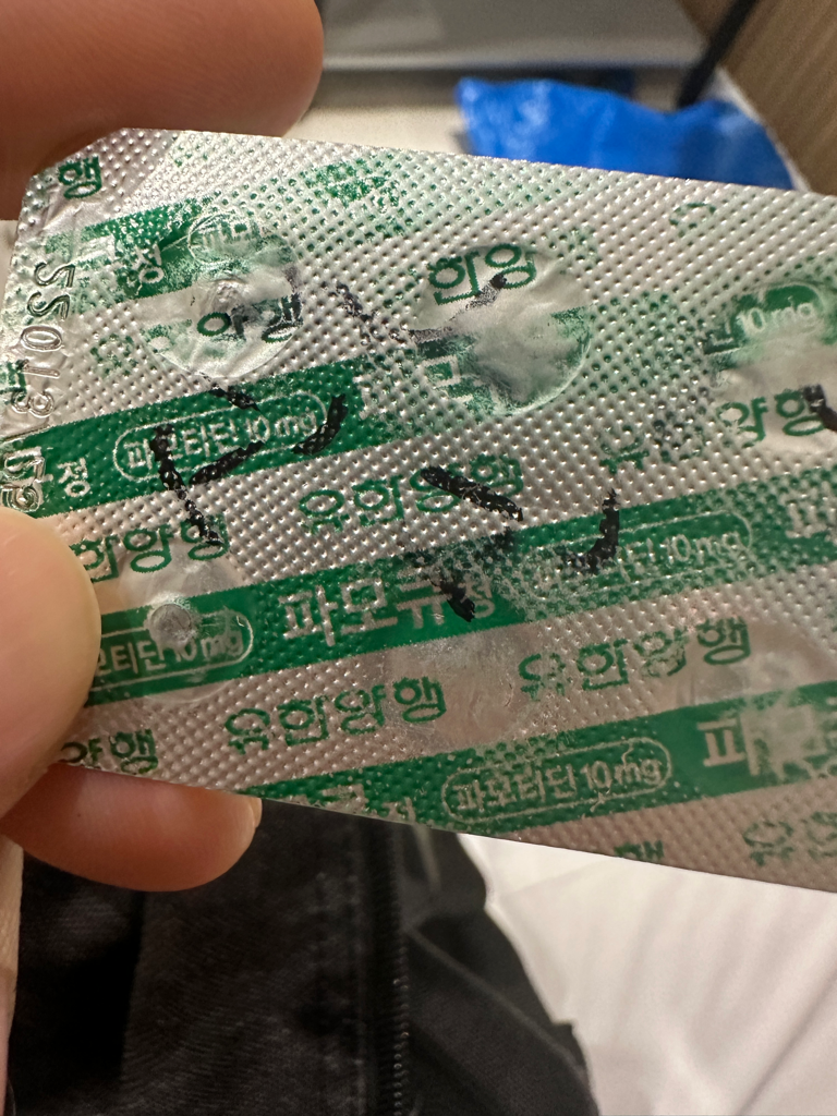 파모큐는 파모티딘이라는 성분으로 되어있는 위산 없제제로 진통소염효과와는 무관한 약입니다.
