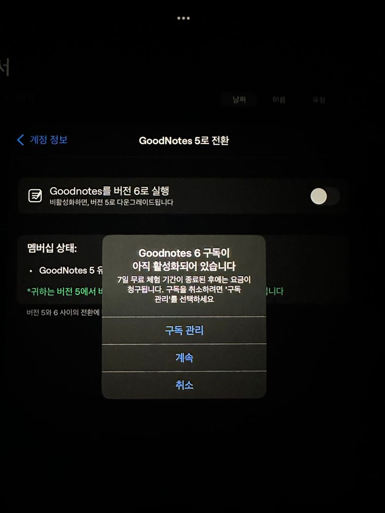 굿노트6이거 5로 어떻게 내리나요? 구독취소가 안됩니다 ㅠㅠ