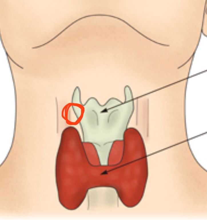 울대뼈 바로 왼쪽에 1cm 조금 넘는 굉장히 딱딱하고(뼈랑 헷갈릴 정도) 동그란 혹이 하나 있습니다. 사진에 빨간 동그라미로 해둔 부분입니다. 침 삼키면 같이 위아래로 왔다갔다 합니다.