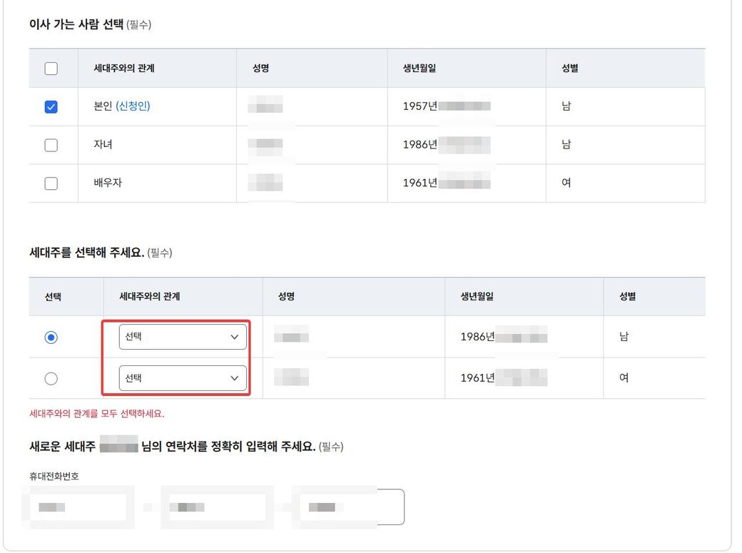 온라인 전입신고 중인데 세대주(본인)가 나가서 딴데 전입할거고 남은 세대원중 자식을 세대주로 할건데