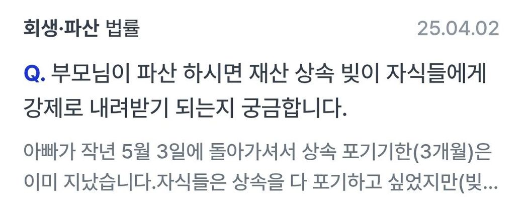 상속포기 기간은 이미 끝난 상태로, 이미 1년이 훌쩍 넘은 상태입니다.
