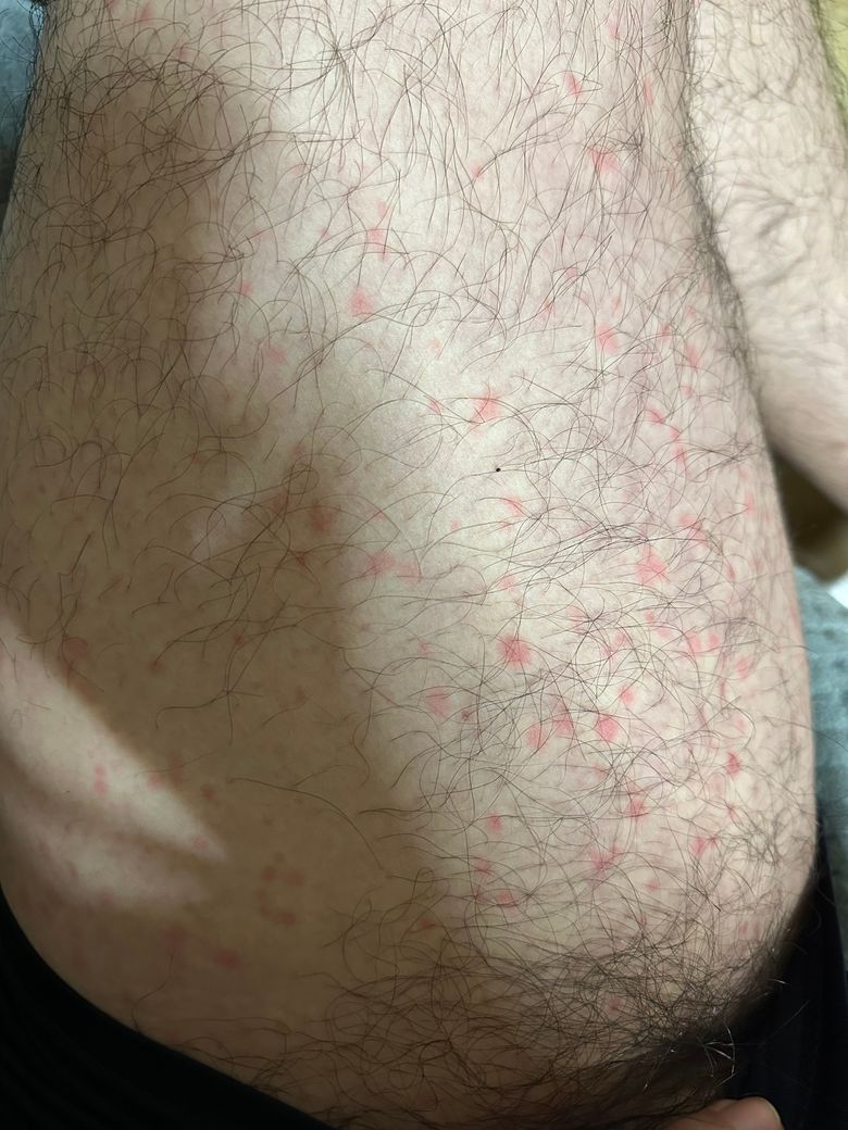 그래서 일어나서 보니까 온몸에 붉은 반점들이 올라와있네요