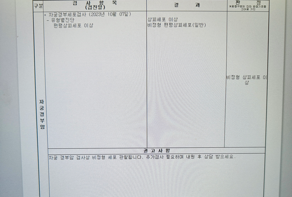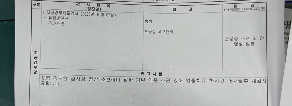 국가 자궁경부암 검사 결과가다른사람과 바뀔수도 있나요?!