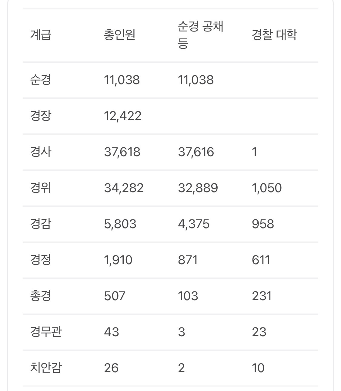 우리나라의 경찰공무원은 총 몇명으로