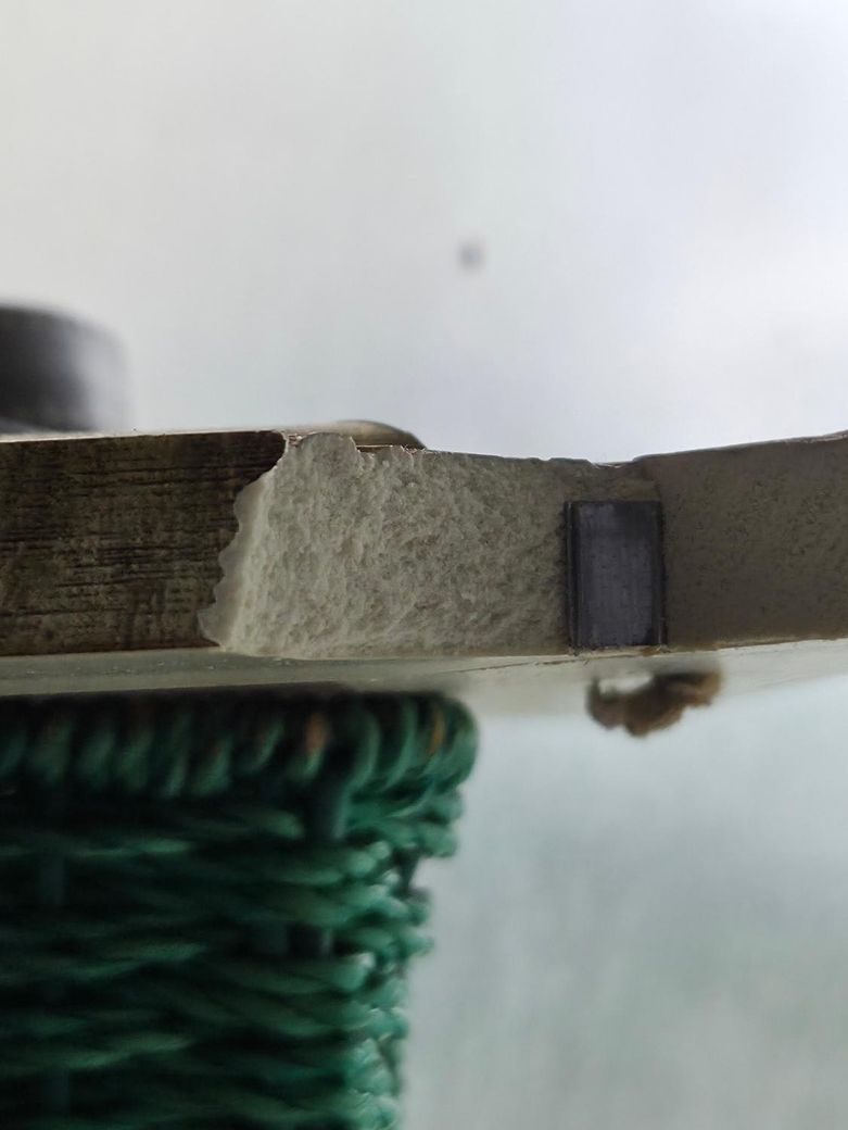 사진 세장 첨부했습니다. 오래된 액자가 깨졌는데 단면이 석면과 유사한가요? 아니면 무슨 재질일까요? 액자가 깨지면서 가루가 날려 눈에도 들어갔습니다.