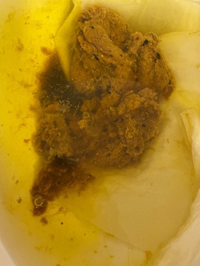 왼쪽에 조금 어두운 부분이 콧물같고 끈적거리는거 같아요. 그리고 색이 검은색은 아니지만 좀 어두워보이는데 혈변인가요? 저게 점액변이라고 말할 수준이 되나요?