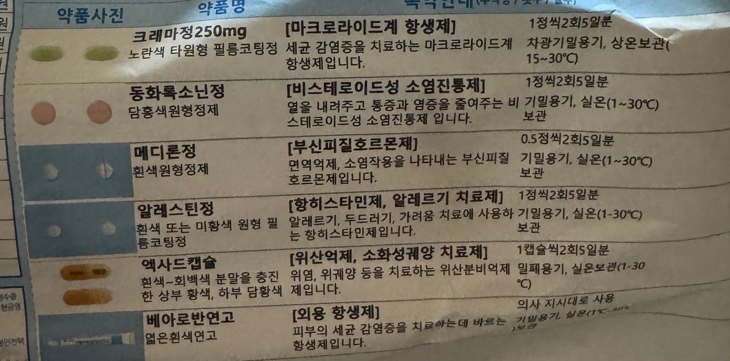 병원 가기전날 상태 그리고 현재 상태 먹은 약과 연고 사진 첨부합니다