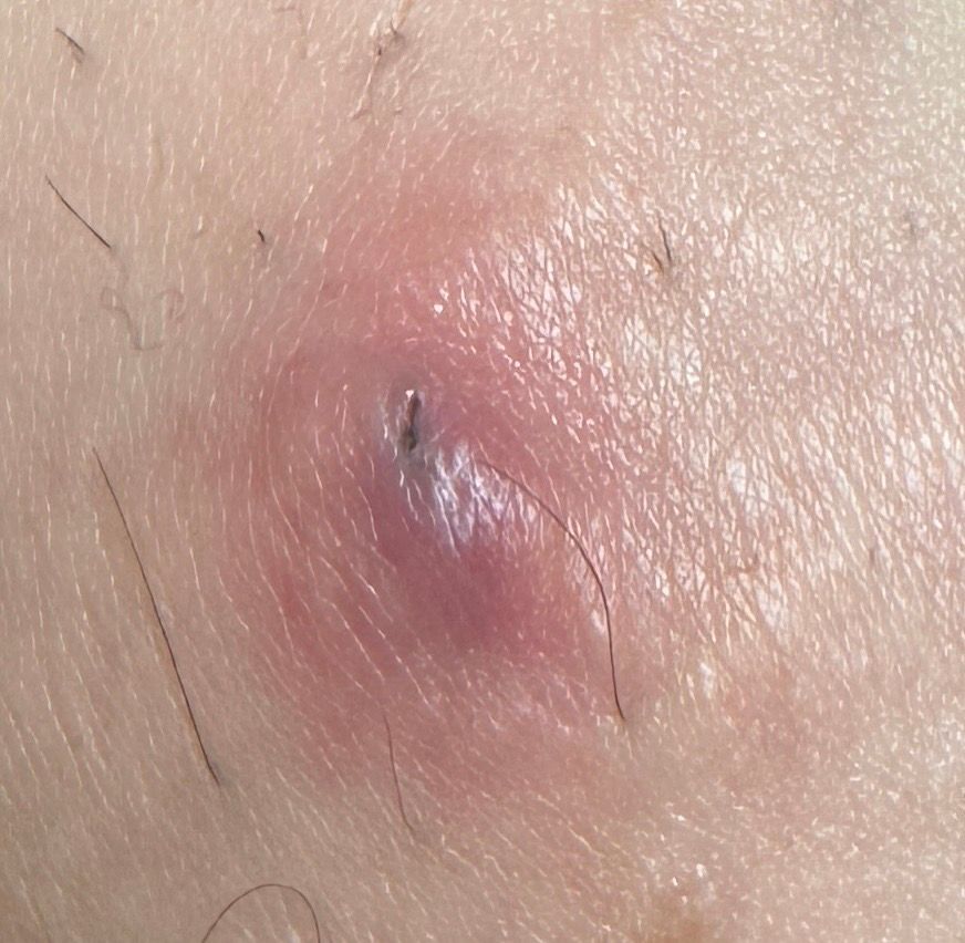 모낭염은 초기 1~2일 동안 색이 더 진해지거나 붉어 보이는 변화가 흔합니다. 염증이 피부 깊숙이 있을 때는 붉→보라→갈색으로 잠시 진해지는 과정을 거치는 경우도 있습니다.