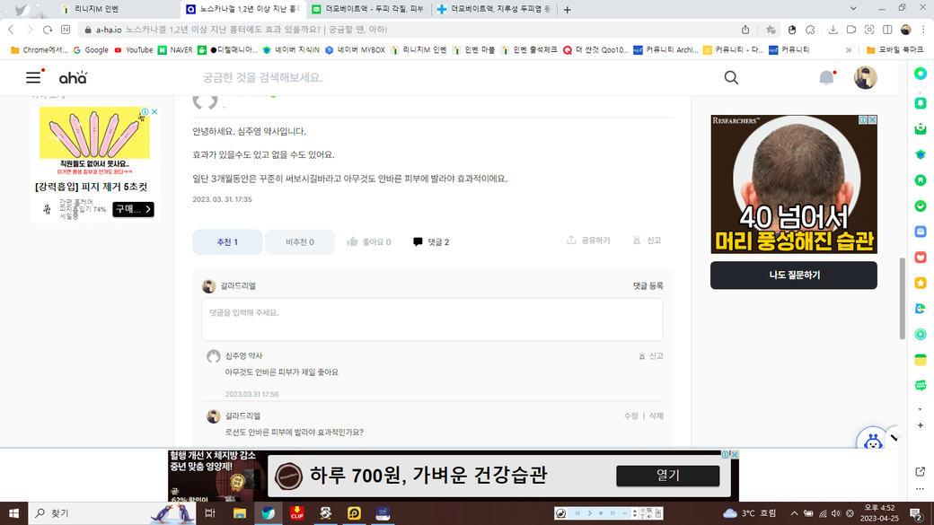 노스카나 겔에 대한 질문에 달린 답변 맞는 말인가요?