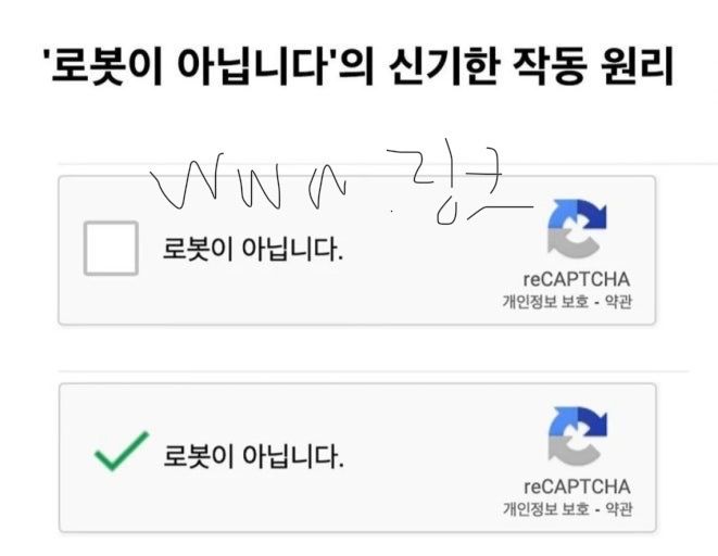 로봇 아닙니다를 클릭하고 사이트에 들어가니까