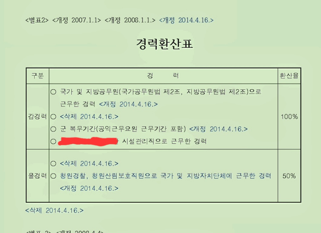 (위 사진은 지방공단 경력환산표)