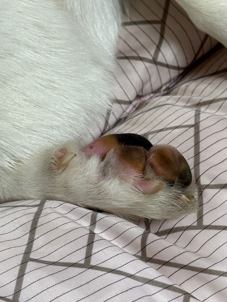 사진에 보이는 점이 갑자기 생긴거같은데.. 이거 그냥 생길수 있는 점인가요???? 강아지가 핥아서 보니까 점이있네요 건강에 문제가 있는건 아니겠죠..?