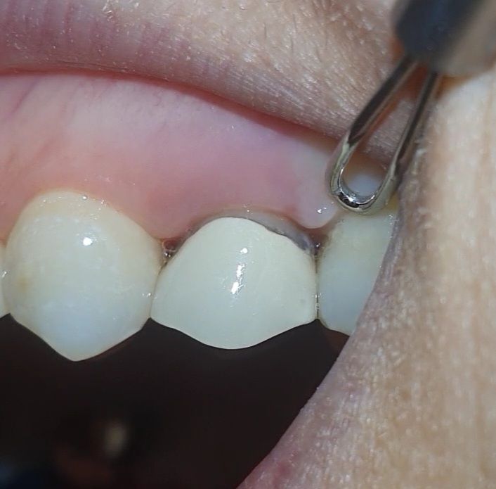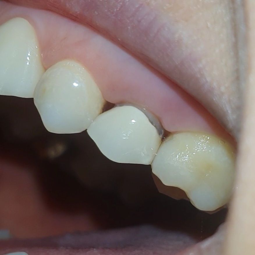 23년에 결국 잇몸치료를 한번 받았으나 여전히 통증이 완전히 사라지지 않아서 또다른 보존과 전문의 보철과 전문의 대학병원 치주과 전문의 대학병원 구강외과 전문의 등을 또 방문해 검진했는데도 치주염이 발생했던 자리라 또 치주염이 발생할수있다했고 현재는 이상이 없다했으며 ct상으로도 이상이 없다고 하였고 간혹 우울증으로 치통이 생길수 있다며 정신과 의뢰서를 써주겠다는 제안에 정신과에서 진통효과가 있는 항우울제로 치료까지 받고 있는 상태입니다 사실상 거의 포기 상태로 있었는데 오늘 또 양치물로 치아 사이를 가글하다가 계속해서 통증을 일으킨 신경치료한지 10년 정도된 PFM 크라운이 되어있는 소구치와 그 옆의 대구치 사이에 시린 통증이 느껴져 아무래도 수상하다 싶어 잇몸을 들춰보니 저렇게 시커멓게 되어있습니다