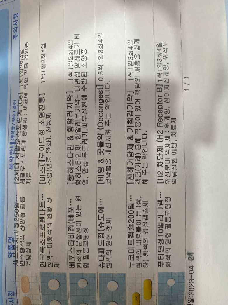 위의 처방약에 진통소염제 성분의 약이 들어 있습니다.