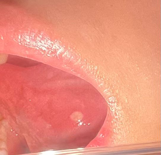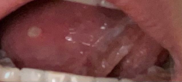 오른쪽 혀 밑 옆면 동그란 하얀 헌데 요몇일 계속 커지고 너무 아파요