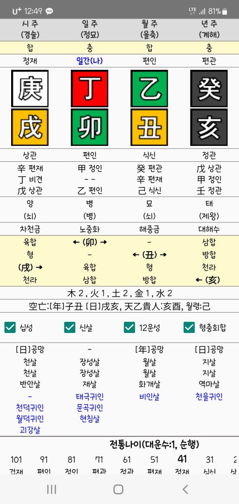 만세력어플에서 파란색은 무엇을 의미하는지 알수있을까요?
