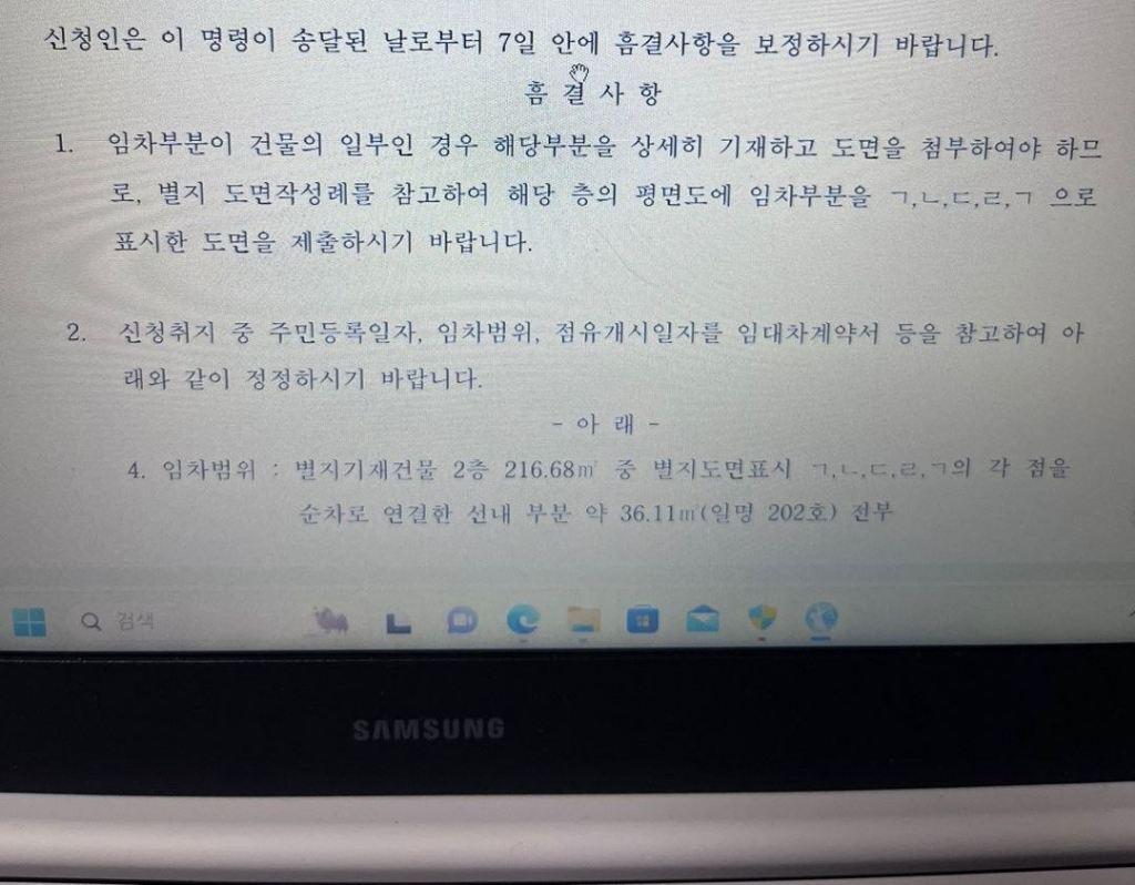 전입신고한 날과 같다면 문제될 것 없어보이는데, 두번째 사진이 위 보정명령 2의 '아래' 부분인가요?