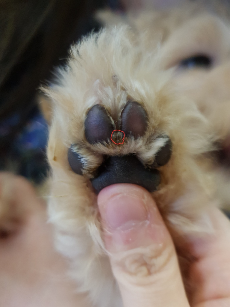 가시일 수도 있고 털에 뚜덕한물질이 묻어 굳은것일 수도 있고 진드기등이 붙어서 일 수도 있지만