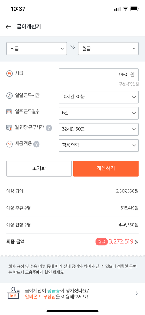 이렇게 계산하는게 맞는건지 알바몬 급여계산기로 계산한게 맞는건지 궁금해요!!!