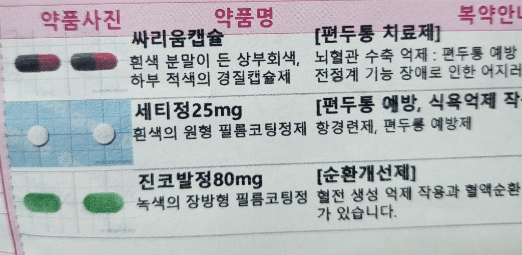 겹치는 약은 없으며 복용 후 조금 졸릴 수 있습니다.