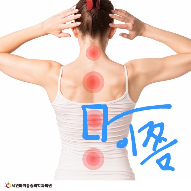 근육쪽도 좀 아프긴 하지만 척추를 꾹 누르면 더 통증이 있습니다.