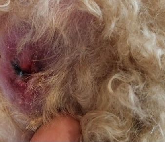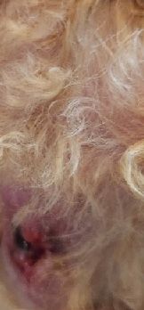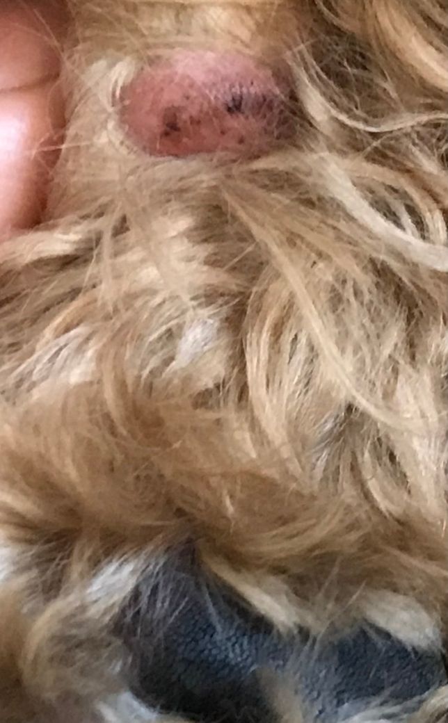 흑색종 초기에는 융기된게 없고, 흑색종의 멜라닌 생성 세포들이 만든 멜라닌은 꼭 자신들의 색깔만 변화 시키는게 아니라 통상 주변 다른 정상 세포를 물들이는 특징이 있어 흑색종을 배제할 수 없습니다. 동물병원에 데려가서 주치의 평가를 받아 보시기 바랍니다.