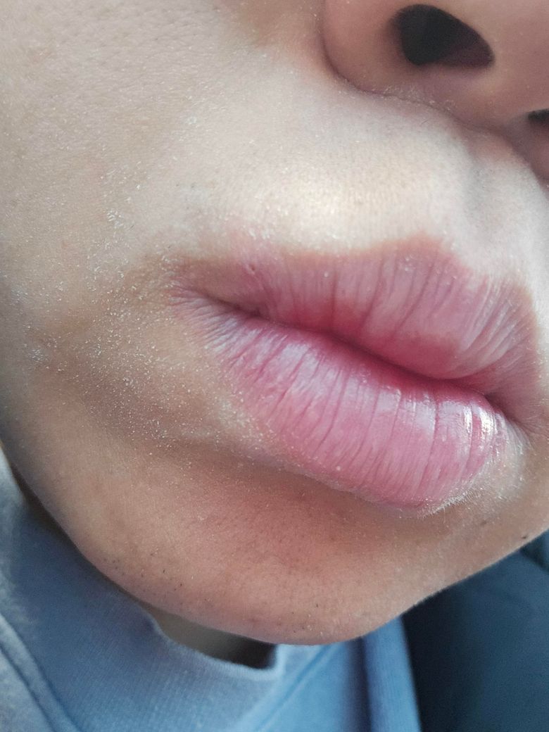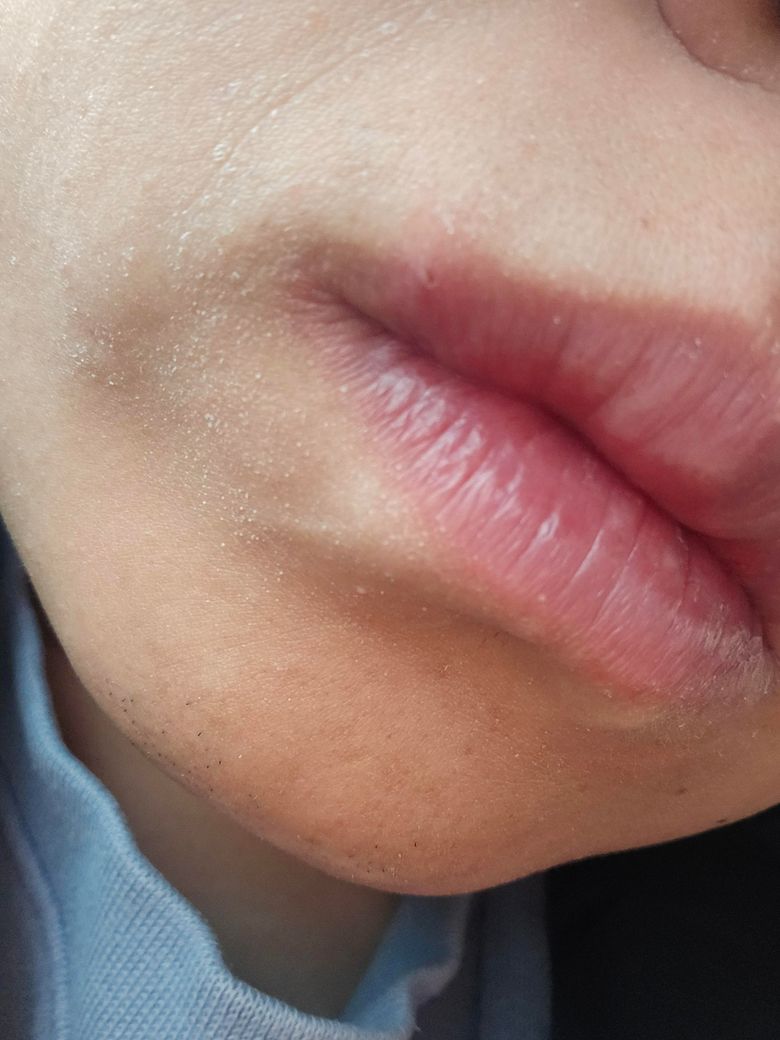 입술 상단 끝자락을 보시면. 무언가 살짝 부어오르듯이 났는데요. 분명 며칠전까진 안그랬는데 이럴게 되었습니다. 헤르페스인가요? 만지면 통증이 있어요
