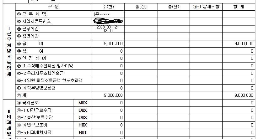 직전연봉관련 원천징수 영수증이 이상해요..