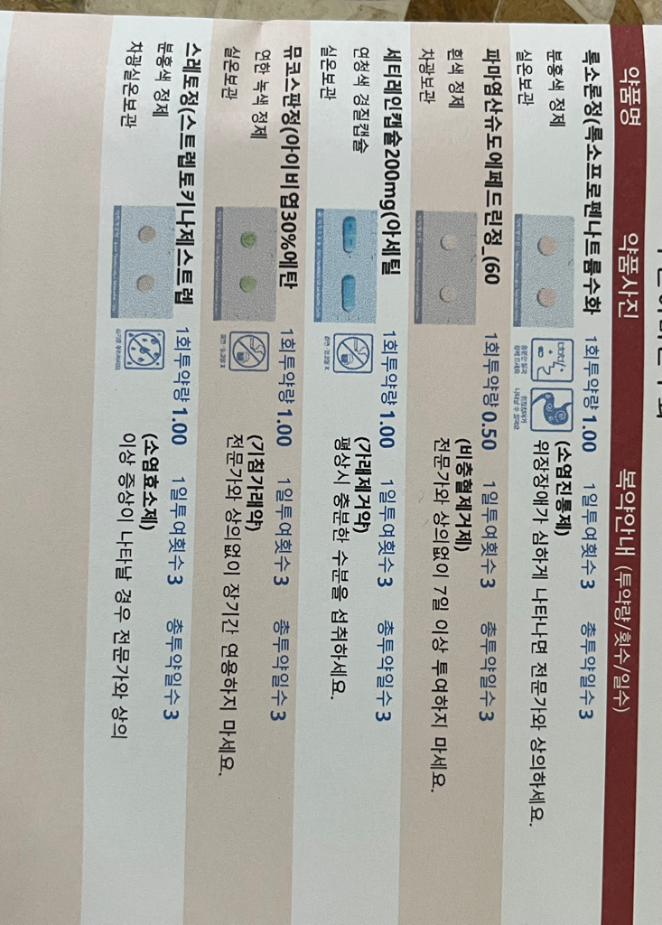 록소론정 / 파마염산슈도에페드린정 / 세티레인캡슐 / 뮤코스판 / 스레토정