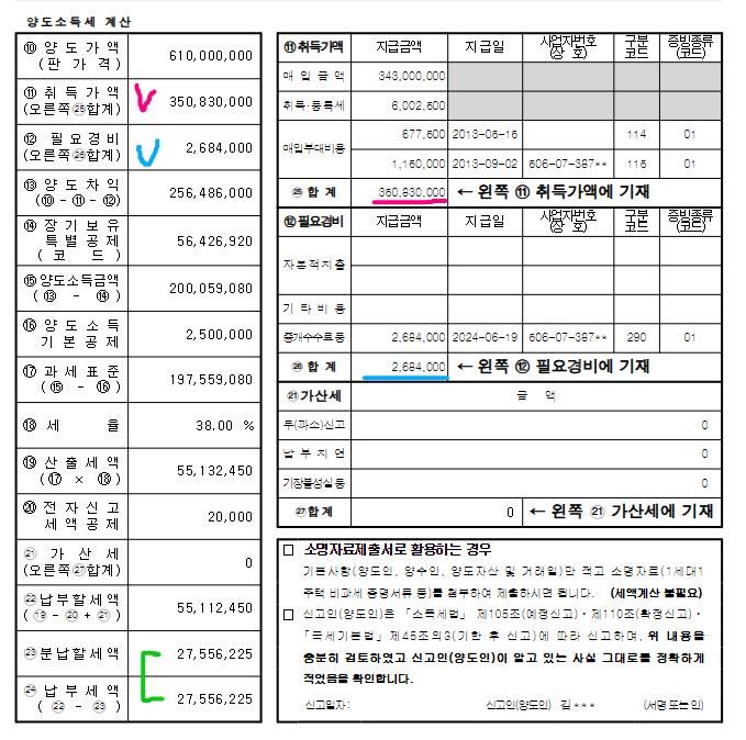 기재하신 것처럼 양도세 신고서를 작성하시면 됩니다. 안타깝지만 양도세 분납은 2개월까지만 되는 것이므로 11월 말일과 다음연도 1월 말일까지 분납하시면 됩니다. 참고로 지방세 신고도 하셔야 하며 지방세 신고납부기한은 다음연도 1월 말일까지입니다.