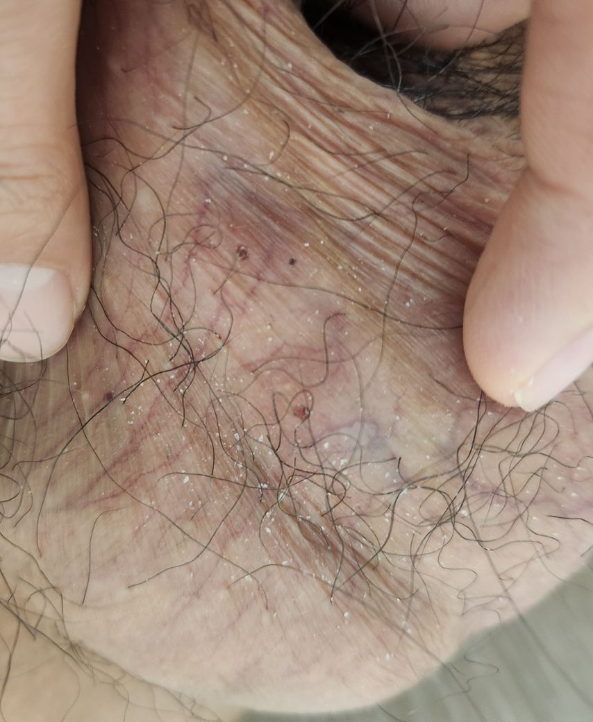 고환쪽에 움푹페인 검은 점자국 헤르페스2형 일까요?