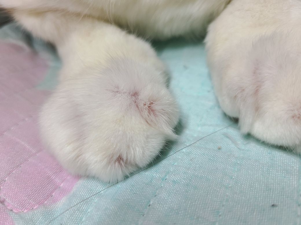 근데 사진처럼 앞발이 듬성듬성 좀 빨간것 같아서