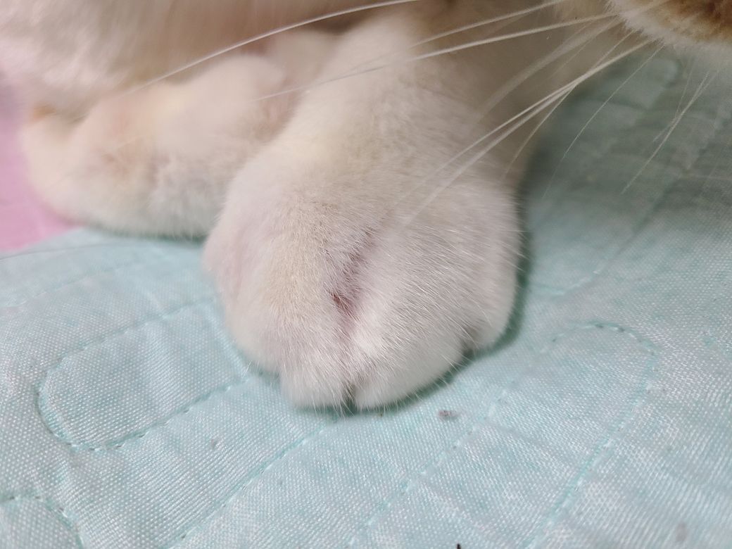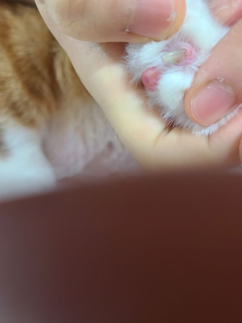 고양이 앞발에 부종이 있는 것 같습니다.