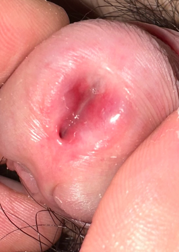 요도 끝 부분의 발적 소견이 보이며 요도염 같은 문제를 의심해볼 수 있는 소견으로 보이지만 해당 정보들을 통해서 성병 여부를 감별할 수 없습니다. 우려스럽다면 비뇨의학과적으로 진료를 받아보시길 권고드립니다.