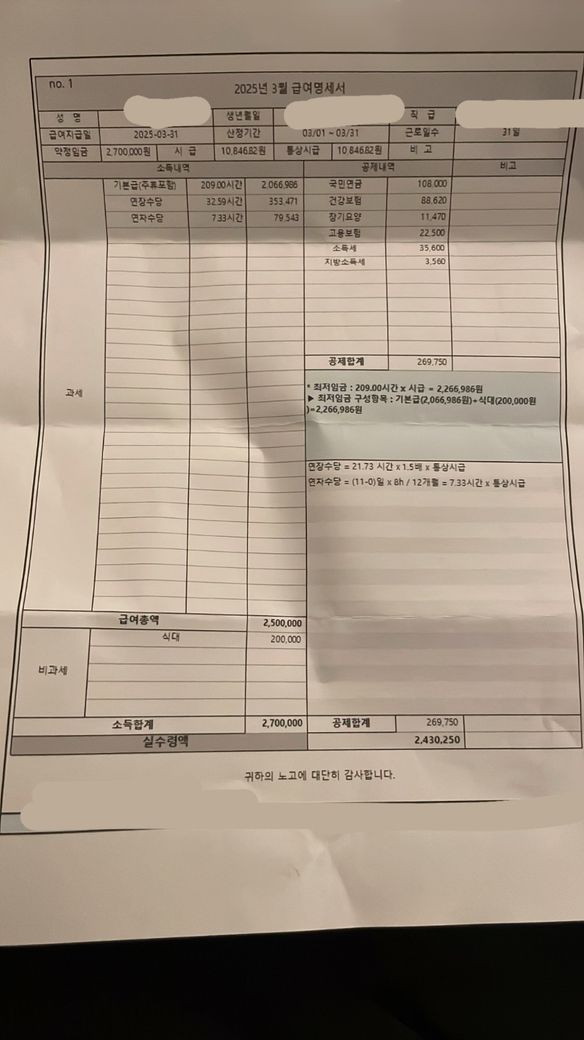 그에 대한 휴일 근로수당이 급여명세서에 없는 거 같아요 확인 해주실 수 있을까요?