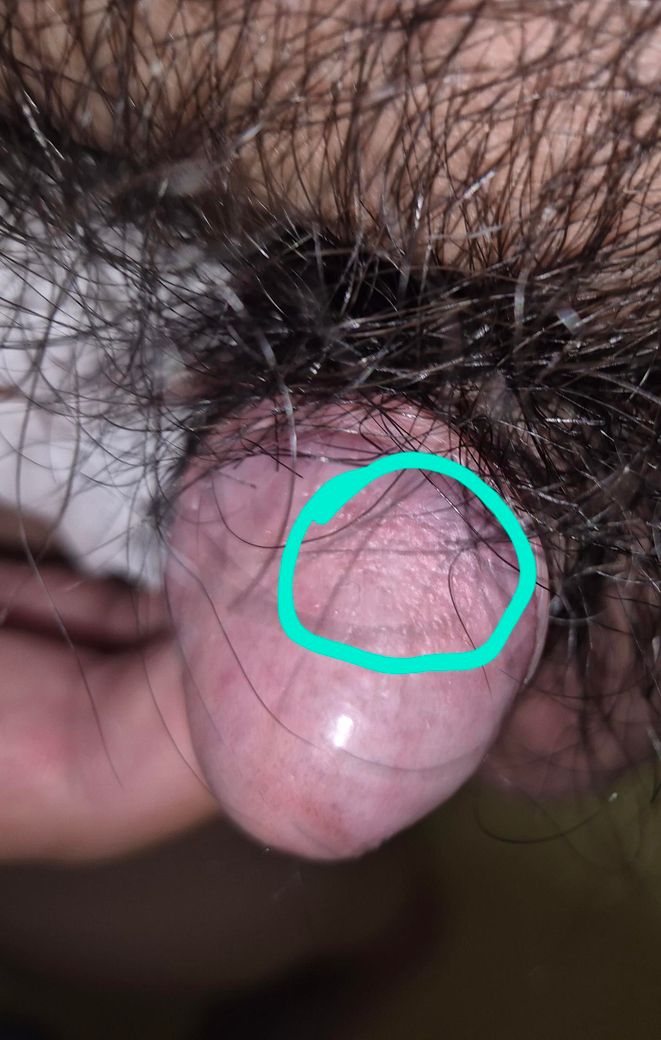 사진상 보이는 병변은 귀두 표면에 균일하게 분포한 미세한 구진 형태로 보이며, 발적·궤양·분비물·수포는 관찰되지 않습니다. 통증이나 소양감도 없다면 병적 감염보다는 정상 변이 가능성이 높습니다.